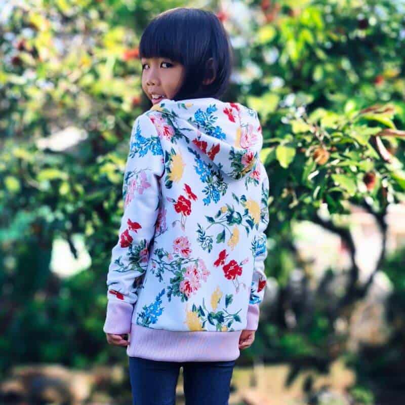 The Basic Hoodie for kids is an easy to sew hoodie with options for a zip up or solid front, available in kids sizes premie - 20 youth.