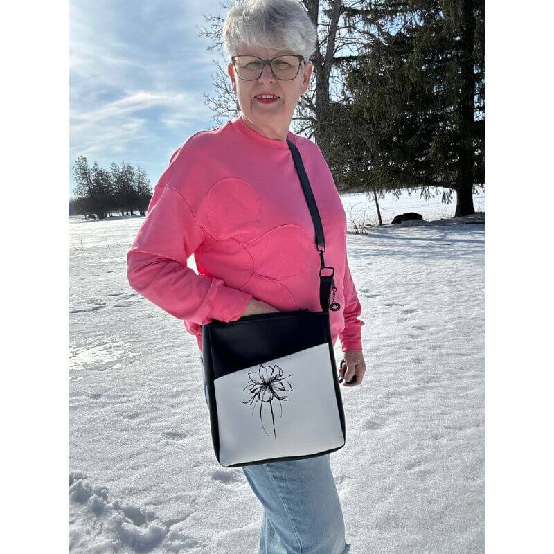 Gemma is a cross body bag with an adjustable strap. It features an angled pocket across the front and a matching angled seam detail on the back, which are perfect for colour blocking. You can choose to make Gemma with either a 1" or 2" deep gusset. It has plenty of pocket options for you to organize exactly the way you like.