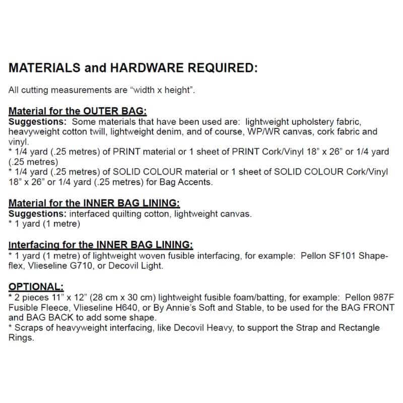 Recommended Fabric: Lightweight upholstery fabric, heavyweight cotton twill, lightweight denim, canvas, cork, vinyl