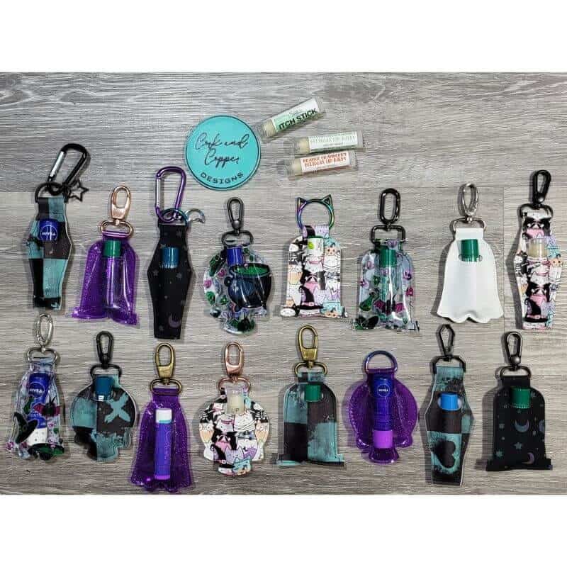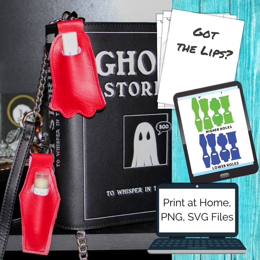 - 4 different chap stick/lip balm holder designs, each with 2 hole placement options. Designs are ghost, skull, coffin, and tombstone shaped