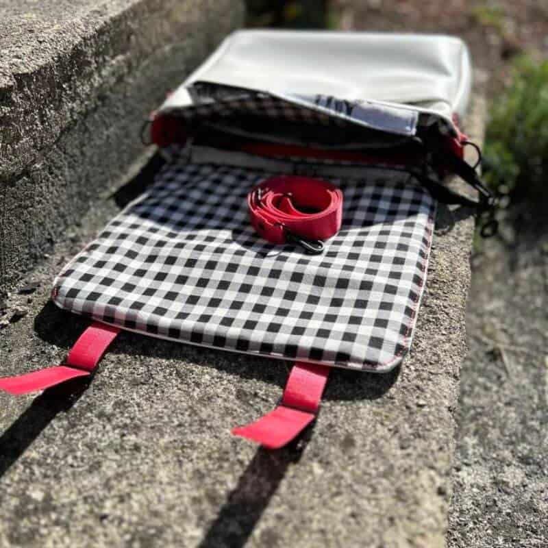 Recommended Fabric: outer - cork, vinyl, waterproof canvas. lining - cotton, waterproof canvas, etc. requires woven interfacing.