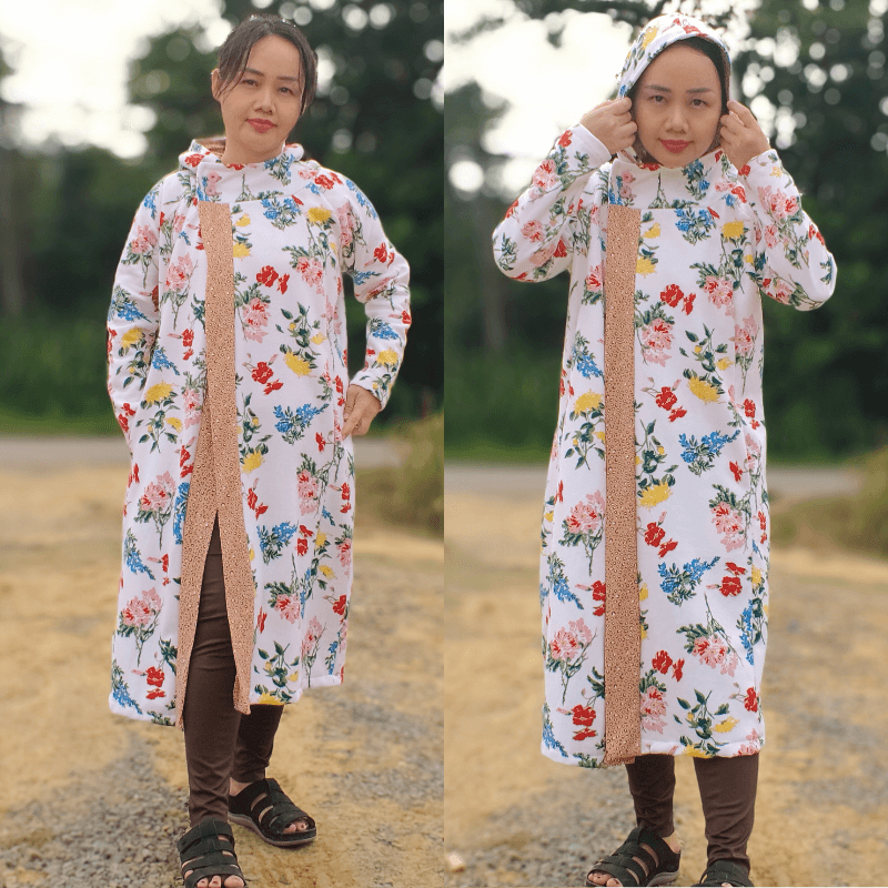 The Rogue Cloak is a versatile sweater/jacket for knit fabrics. It features a crossover style with buttons, two front styles, inseam or patch pockets, regular or cloak hood, and optional cuffs. Check out our video on alternative closure options (no button holes).